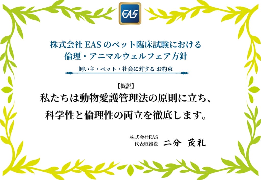 しっぽモニターは、科学的に証明されたエビデンスを必要とするヒト臨床試験およびペット用品臨床試験のコーディネート、マーケティング、開発企画、医師監修サービス事業などを手掛ける株式会社EASが運営しています。